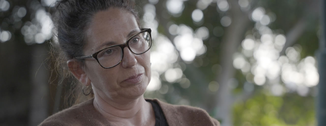 アメリカ生まれで、アメリカとイスラエルの二重国籍を持つ。高校で歴史を教えている。ホロコーストの専門家。キブツ•ニールオズ在住、三児の母。